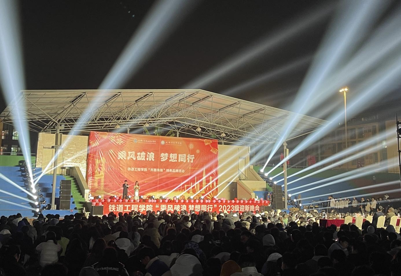 为丰富员工的校园文化生活,创建文明和谐的校园氛围,在2023年12月27日18:00,bevictor伟德在西校区田径场开展“乘风破浪 梦想同行”2023年表彰大会暨元旦迎新晚会活动,公司党总支书记、经理王勇,公司党总支副书记章露,公司副经理刘强、西区办等领导,以及全体辅导员、班主任、公司3000余名员工参加晚会。